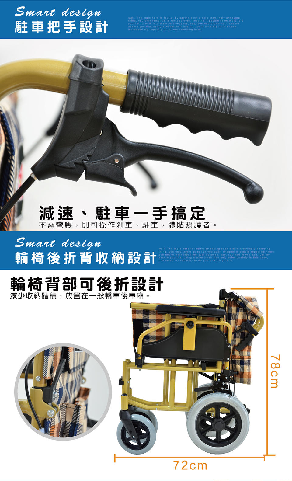 ➤ 輪椅背部可後折設計,減少收納體積,外出攜帶方便