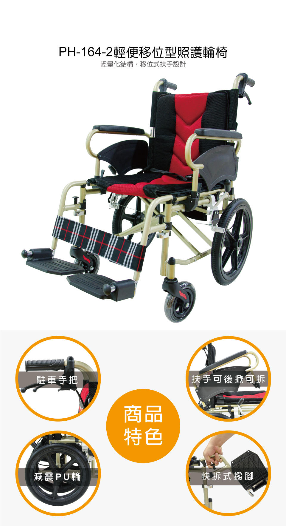 PH-164-2、PH-184-2 輕便移位型看護輪椅