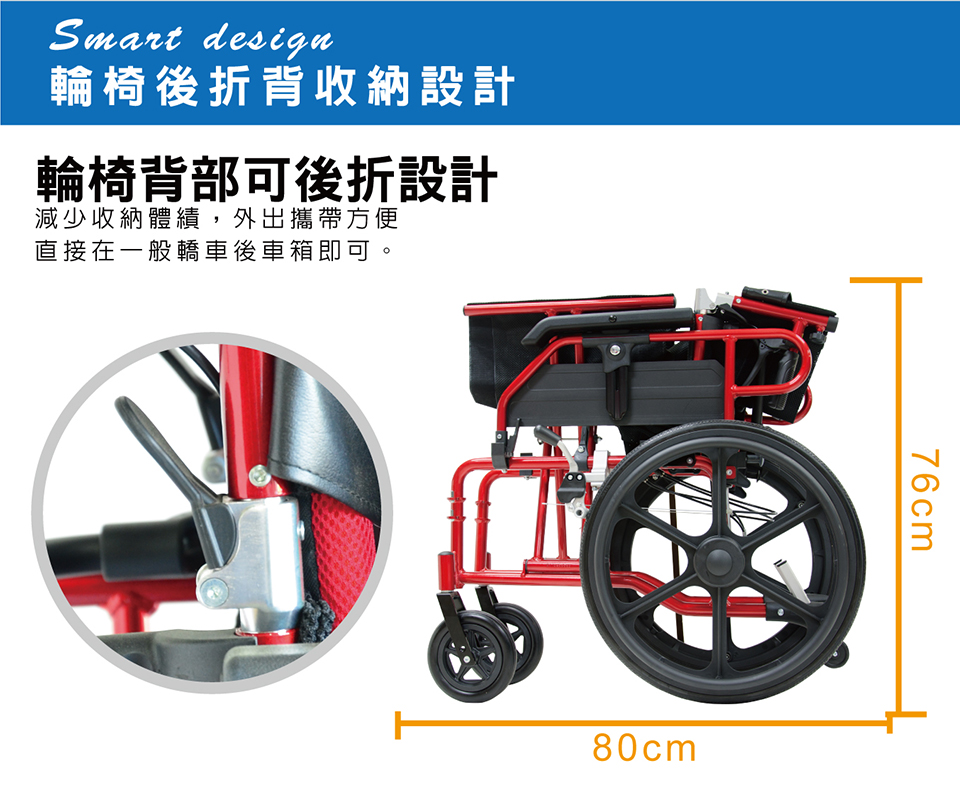 ➤ 輪椅後折背收納設計,減少收納體積,外出攜帶方便