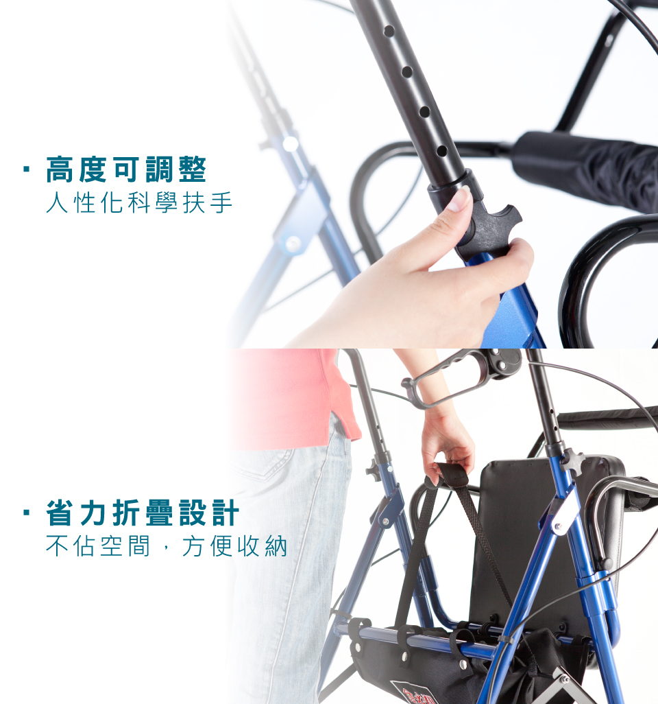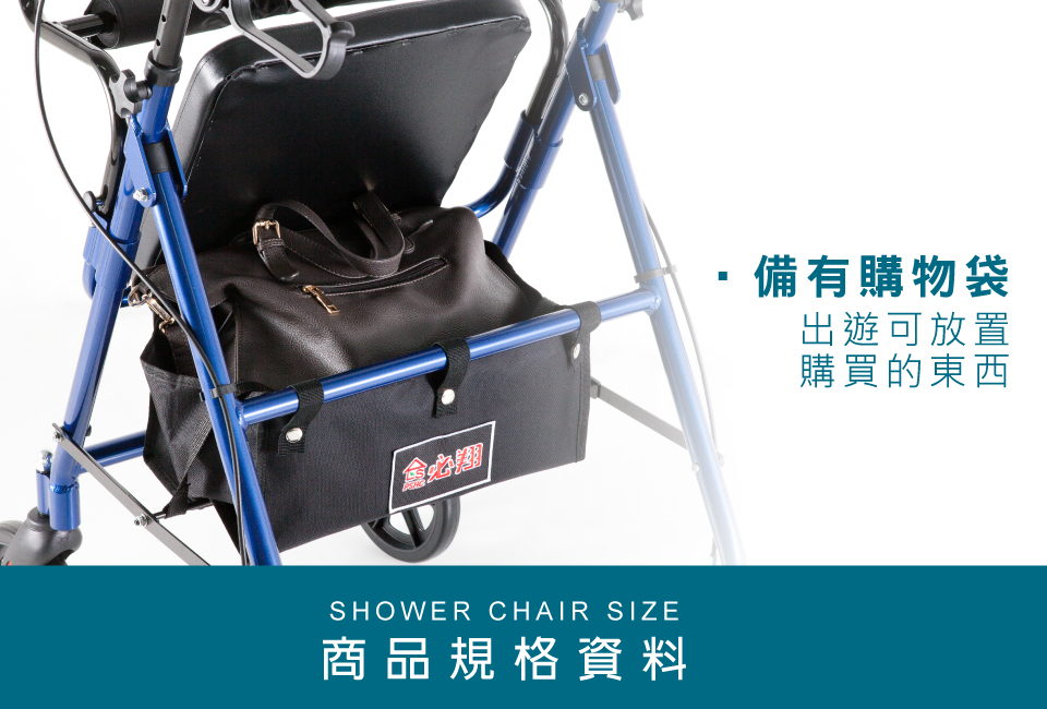 ➤ 附腳踏板、背墊,可當臨時輕便型輪椅使用