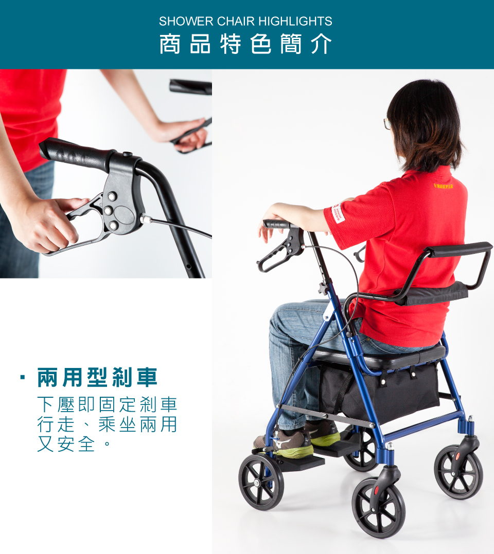 ➤ 可手剎車或固定剎車,行走乘坐兩用又安全(下壓即固定剎車)