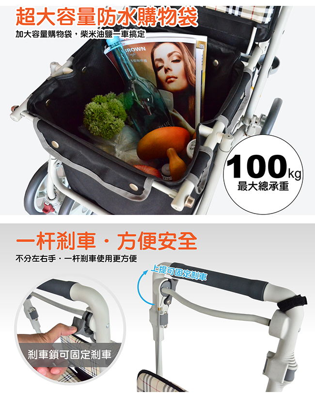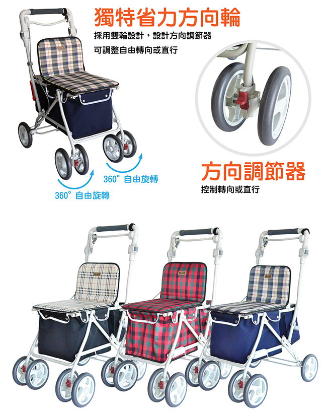 ➤ 前輪可定位與360度旋轉,操作相當便利。