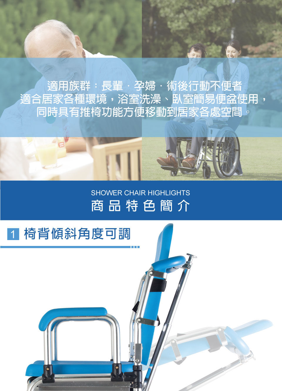 ➤ 適合體弱、行動不便或癱瘓性病患。結合沐浴、便器、如廁、移位、輪椅等功能,人體工學設計,操作簡易,可避免造成照護者背部傷害。