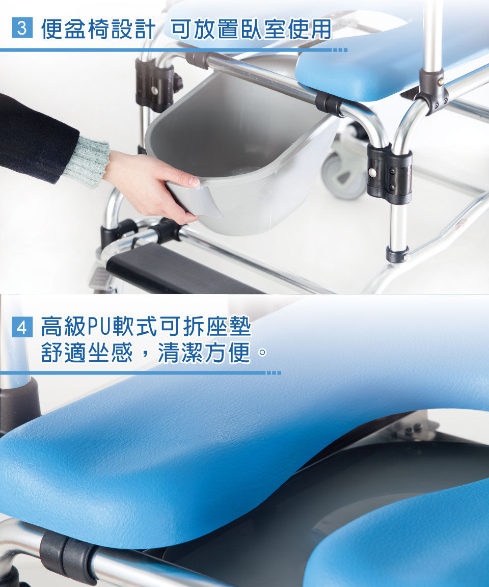 ➤ 可抽式便盆,PU坐墊柔軟舒適。