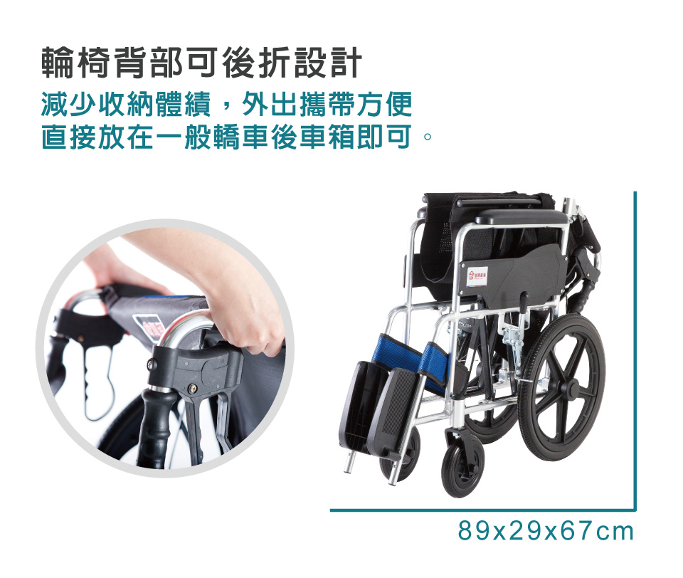 ➤ 輪椅背部可後折設計,減少收納體積,外出攜帶方便