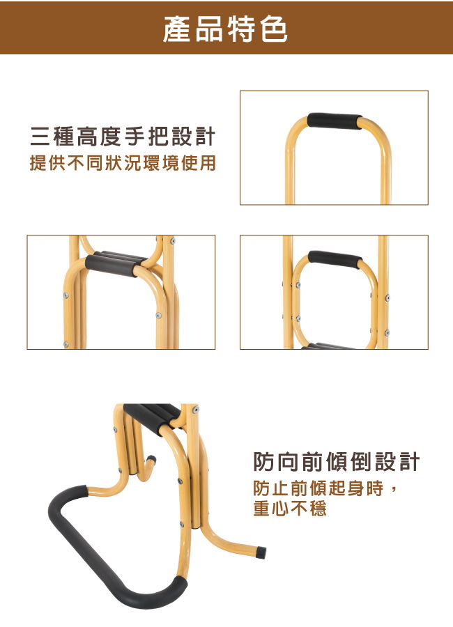 ➤ 三種高度手把設計,提供不同狀況環境使用